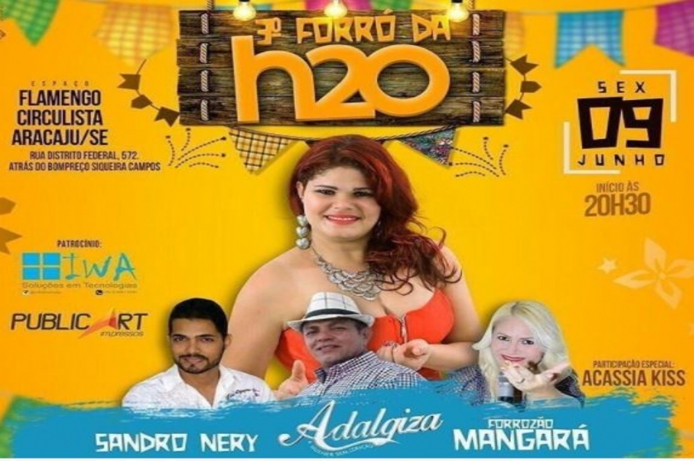Adalgiza, Sandro Nery, Forrozão Mangará e Acássia Kiss são as atrações do Forró da Academia H2o Fitness. O evento acontece no dia 9 de junho, a partir das 20h30, no Espaço Flamengo Circulista, localizado no bairro Siqueira Campos. Os ingressos estão à venda na sede da academia.