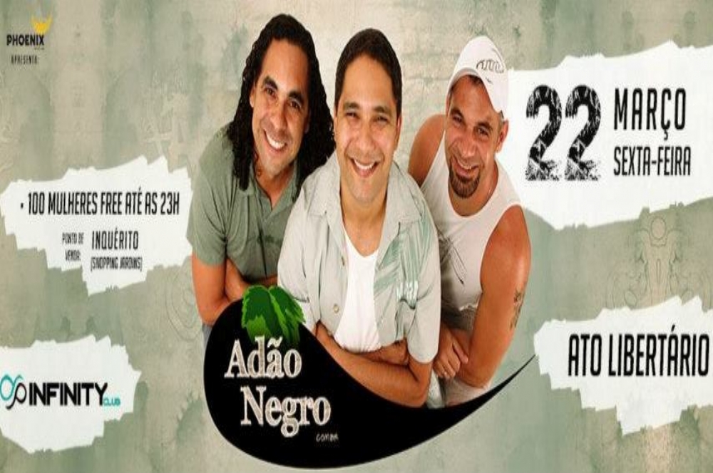 Galera que curte o reggae fiquem ligados, pois dia 22 de março, às 23h, acontece o show do Adão Negro na boate Infinity Club. Um show super exclusivo onde o público ficará bem perto dos integrantes da banda, sentindo a verdadeira energia desse grupo conhecido no cenário nacional da música.