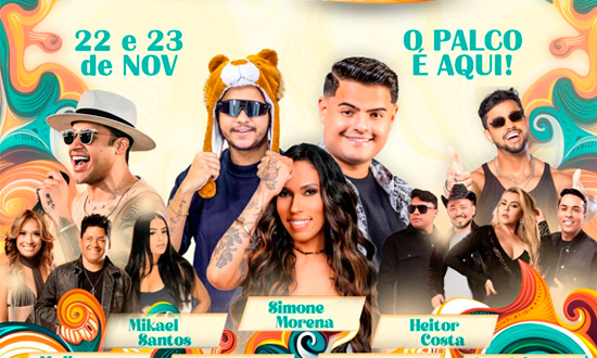 No primeiro dia de festa, subirão ao palco Simone Morena, Mikael Santos e Cavaleiros do Forró. Já no dia 23, o grupo Parangolé vai puxar o trio elétrico pela avenida e no palco quem comandará será Leone o Nobre, Mulheres Perdidas e Heitor Costa.