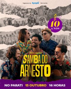 Ingressos Disponíveis em: https://www.sympla.com.br/evento/10-anos-da-samba-do-arnesto/1724980