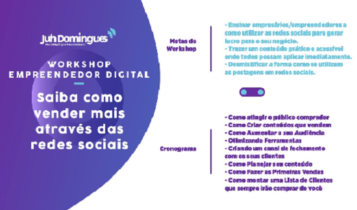 A ministrante da capacitação, Juh Domingues, explica que vai resgatar a prática do que, realmente, está sendo aplicado atualmente no mercado digital e de uma forma acessível a todos os ramos empresariais. “O workshop tem como meta ensinar empresários e empreendedores a como utilizar as redes sociais, com a finalidade de gerar lucro para o seu negócio. Trazer um conteúdo prático e acessível, através do qual todos possam aplicar, imediatamente, e desmistificar a forma como se utilizam as postagens em redes sociais”, destaca Juh, publicitária e especialista em Marketing Digital.