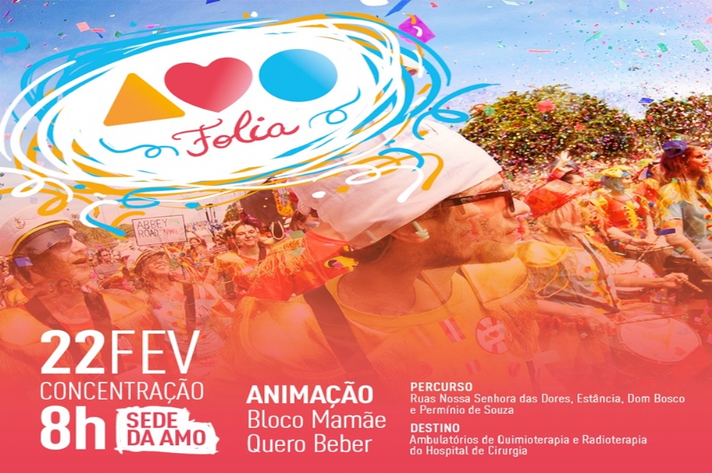 A Associação dos Amigos da Oncologia (AMO) realizará nesta quarta-feira, 22, o AMO Folia. O evento acontece a partir das 8h com animação do bloco Mamãe Quero Beber.
