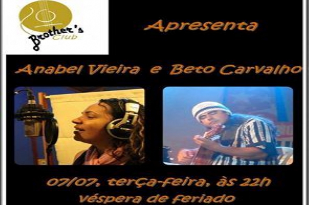 Anabel Vieira e Beto Carvalho prometem um repertório com sucessos de Djavan, Gilberto Gil, Zeca Baleiro, Lenine, Marisa Monte, Vanessa da Mata, Moska, além de outros grandes nomes da Música Popular Brasileira.