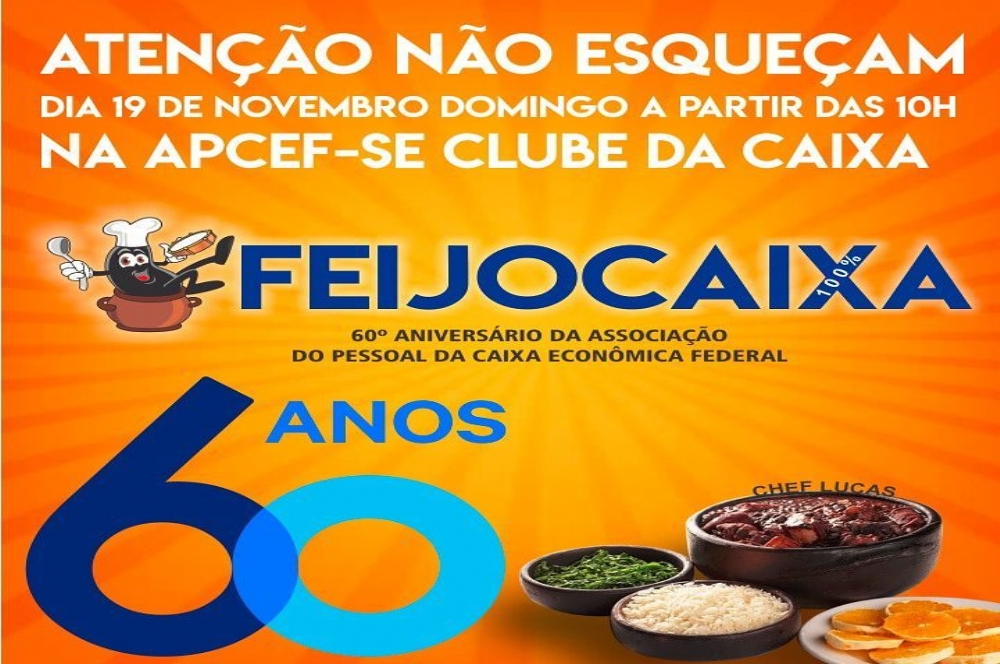 Com samba de qualidade e uma feijoada gostosa, a Associação do Pessoal da Caixa (Apcef/SE) vai comemorar seu aniversário de 60 anos de existência. A partir das 10h da manhã do domingo, dia 19 de novembro, a Apcef/Se realiza a FEIJOCAIXA, uma delícia de festa. O samba de ‘Jeito de Ser’ e ‘Que Batuque é Esse’ prometem um up na alegria para tornar a festa inesquecível.