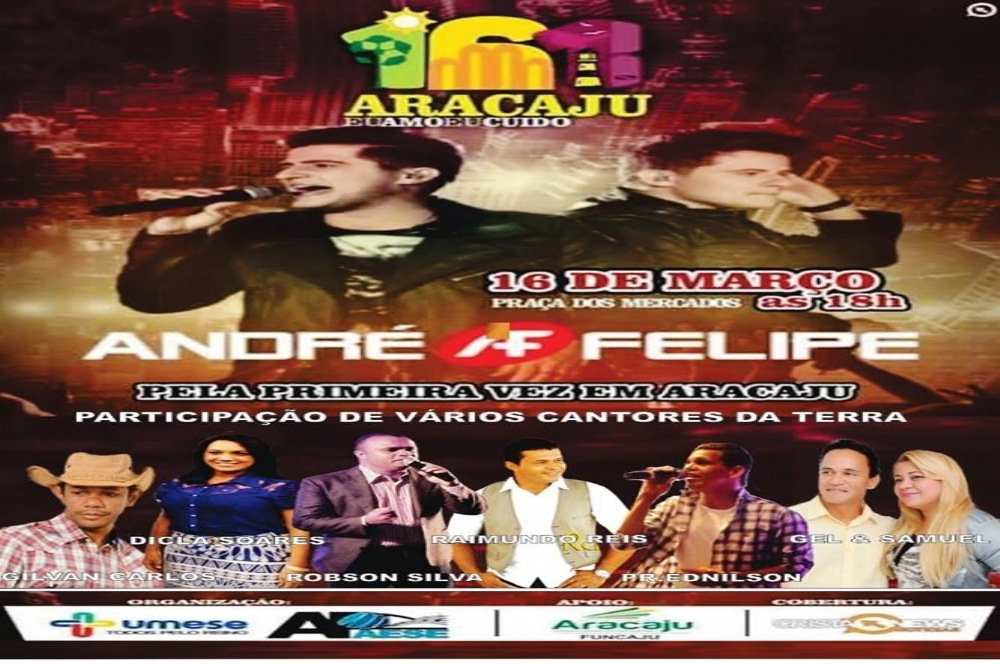 No dia 16 de março, a partir das 19h, a praça de eventos do Mercado Central recebe o evento gospel que abre as comemorações do aniversário de 161 anos de Aracaju. O evento Gospel é uma realização da prefeitura de Aracaju, mas é organizado pela Apaese (Associação de Produção do Artista de Sergipe) em parceria com a União dos Ministros Evangélicos no Estado de Sergipe (Umese). Abrindo a programação do show, que será realizado na praça de evento dos Mercados, a atração principal é a dupla revelação 2015 André & Felipe e Banda. Além deles, cantores da terra também subirão no palco.