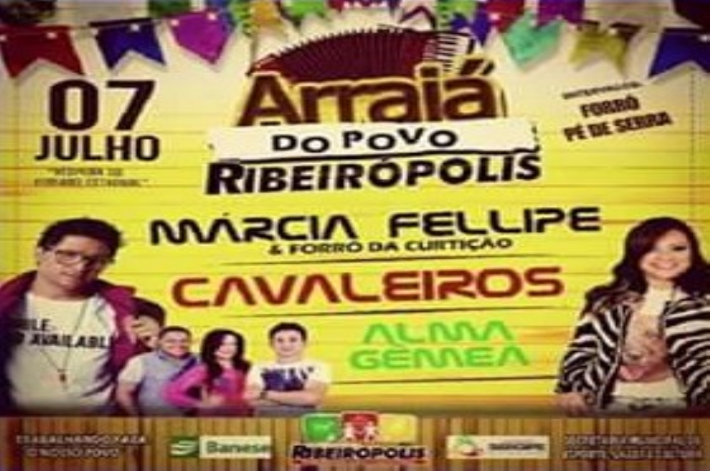 Os festejos do município de Ribeirópolis prometem sacudir a região. O evento acontece nesta terça-feira, 7 de julho, com Forró Pé-de-Serra, Alma Gêmea, Cavaleiros do Forró e Márcia Fellipe e Forró da Curtição.
