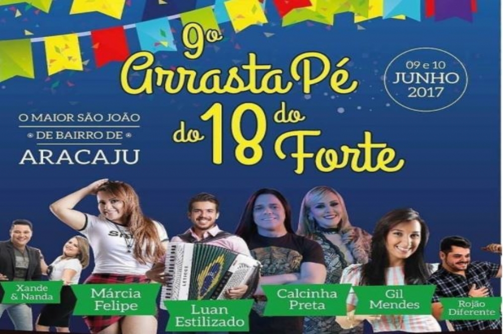 A 9ª edição do Arrasta Pé do 18 do Forte, conhecido como maior São João do Bairro de Aracaju, será nos dia 9 e 10 de junho. A festa é gratuita e acontecerá no Alto do Manoel Pereira (Baixa da Cachorrinha).