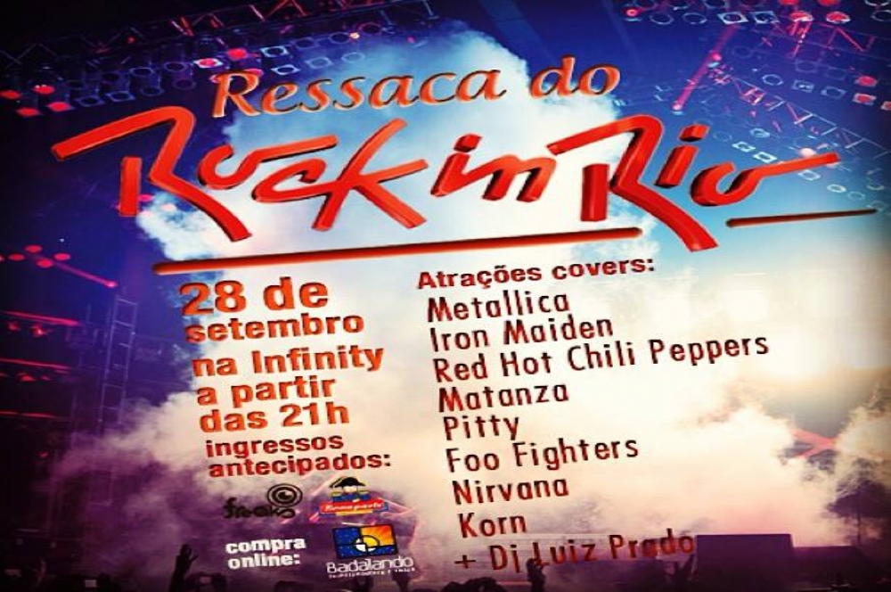 O Festival Badalando Rock está de volta no mês de setembro e o tema desta vez é a ‘Ressaca do Rock in Rio'. Após mais uma edição brasileira do Rock in Rio, o Badalando teve a ideia de trazer para Sergipe um pouquinho do que rolou nas edições do maior festival de música do mundo. Sete covers de bandas de rock, que já passaram pelo evento, se apresentarão na Infinity, no sábado, 28 de setembro, para dar um gostinho ao público sergipano que não pôde ir ao Rio de Janeiro.