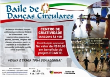 Os interessados em conhecer e vivenciar esse tipo de dança terão uma boa oportunidade no 3° Baile de Danças Circulares que acontecerá neste sábado, 6, às 19h30, no Centro de Criatividade. Cartaz do evento. Clique e confira