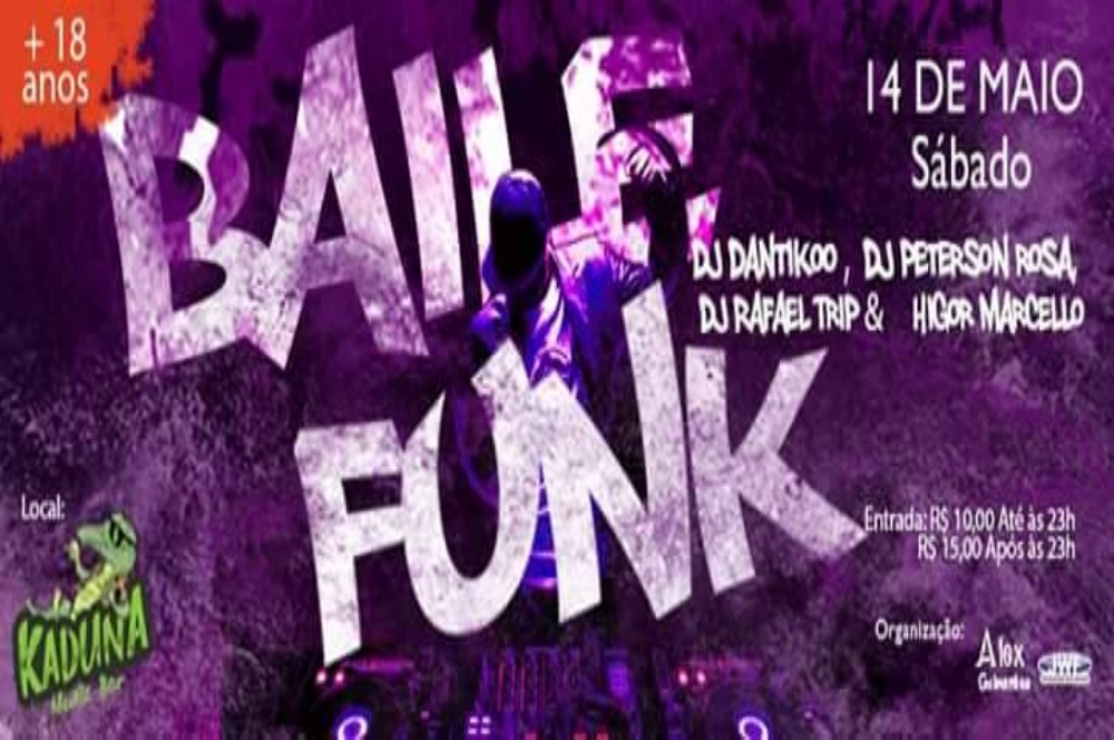 Essa festa promete! No próximo dia 14 de maio, a partir das 22h, o Kaduna Music Bar (antigo Maori/Alternas) será palco de um super Baile Funk. Essa é para quem curte os proibidões, antigos e novos sucessos desse ritmo tão contagiante. Com superestrutura, a balada terá dois palcos (um com música eletrônica), equipe de apoio, segurança reforçada dentro e fora do evento e iluminação diferenciada. Os DJs Peterson Rosa, Higor Marcello, Rafael Trip e Dantikoo comandarão as pick-ups.