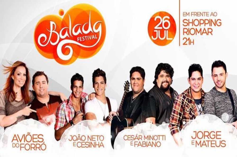 Jorge & Mateus, Aviões do Forró, César Menotti & Fabiano e João Neto & Cesinha são as atrações do Balada Festival que acontece no dia 26 de julho. A festa será realizada em frente ao Shopping Riomar, a partir das 21h. Os ingressos da pista e do camarote já estão disponíveis na Central do Pré Caju, localizada no Shopping Riomar.