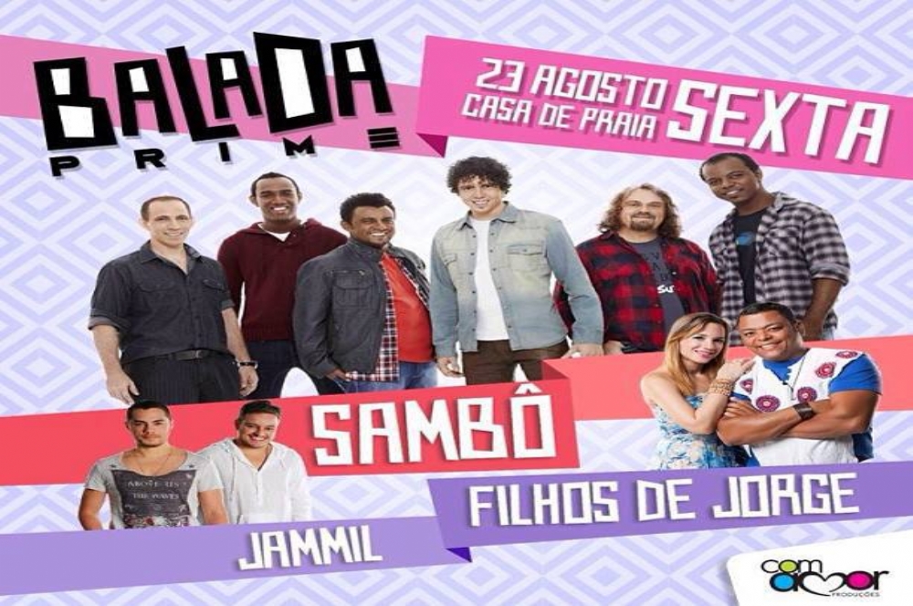 A Casa de Praia receberá o Balada Prime, evento que reinirá Sambô, Jammil, Filhos de Jorge e a Dj Renata Dias numa só noite. A festa aconterá no dia 23 de agosto, na partir das 22h, a Casa de Praia. Os ingressos já estão à venda na Central do Pré-Caju do Shopping Riomar.