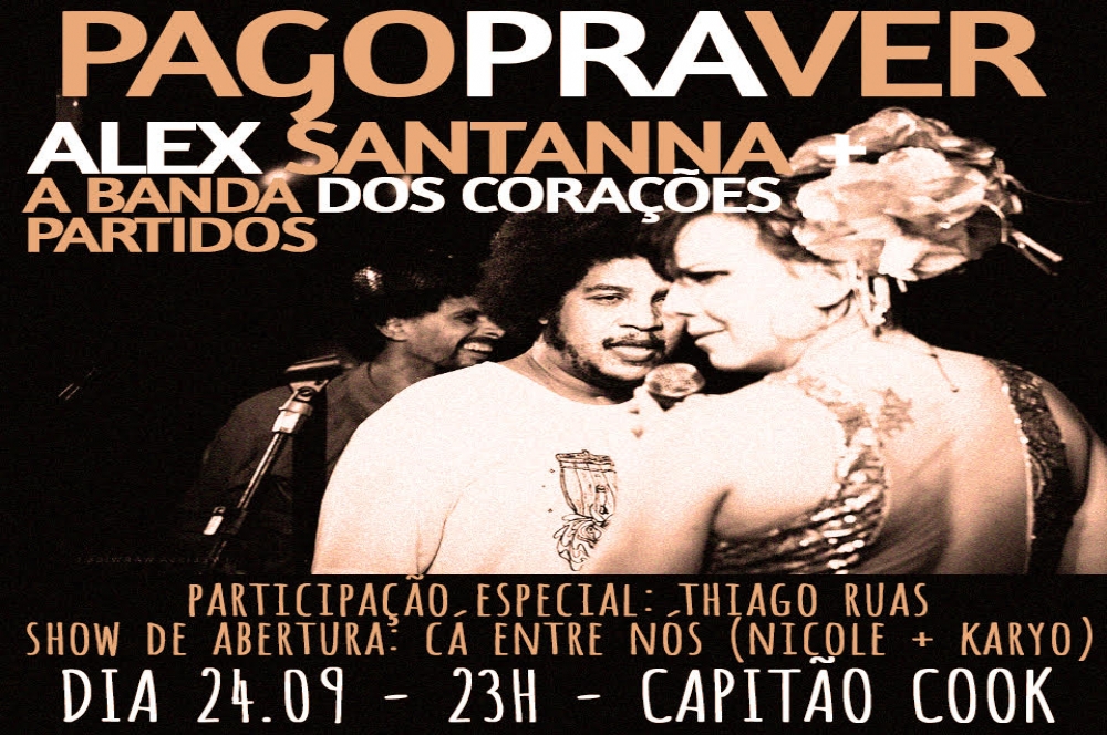 No sábado, 24, o Capitão Cook vai receber Alex Sant'Anna e a Banda dos Corações Partidos em mais uma edição do projeto Pago Pra Ver. Thiago Ruas e Cá Entre Nós também farão parte do evento.