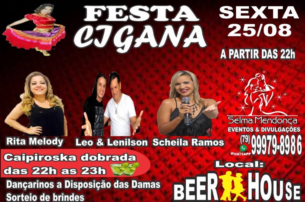 A Casa de Shows Beer House realizará a ‘Festa Cigana’ nesta sexta-feira, 25 de agosto, a partir das 22h, com Rita Melody, Léo e Lenilson e Scheila Ramos.