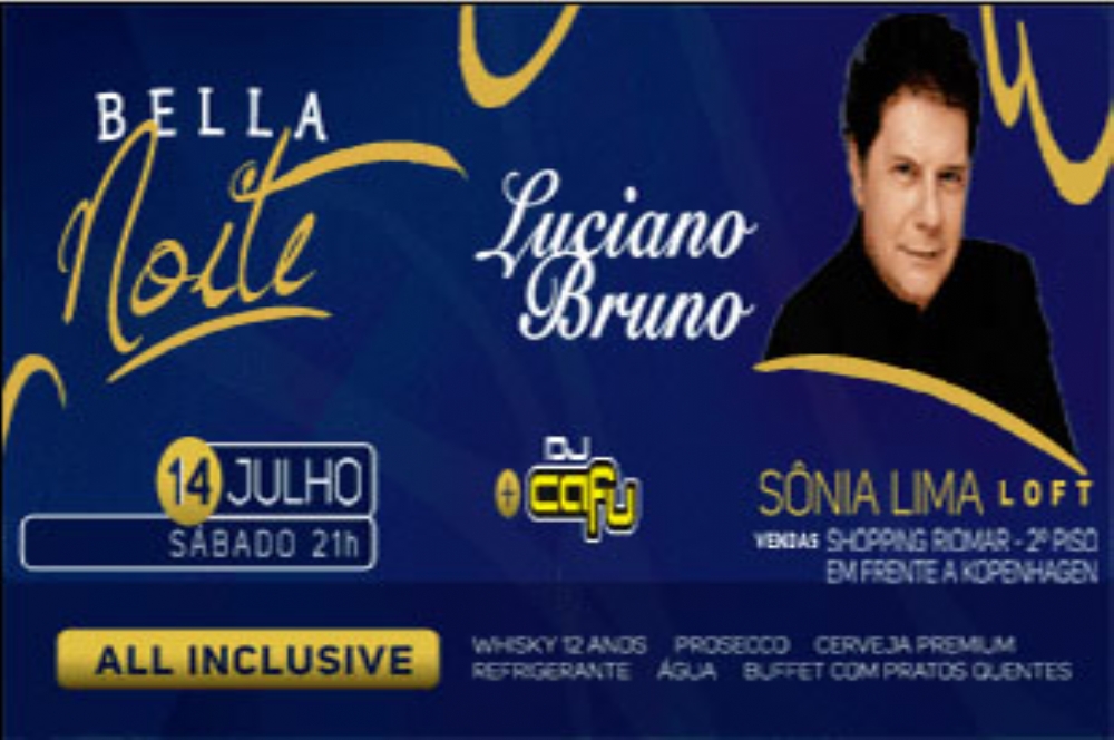 A Bella Noite, festa all inclusive que acontece no dia 14 de julho, trará o cantor Luciano Bruno. A festa, regada à música italiana, whiky 12 anos, refrigerante, prosecco, cerveja premium, e buffet com pratos quentes, será realizada no Sônia Lima Loft.