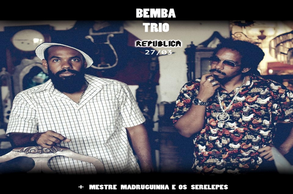 Bemba Trio e Mestre Madruguinha & os Serelepes comandam o agito desta sexta-feira, 27, no bar República. A festa está marcada para às 23h e ainda contará com Djs convidados. Ingressos à venda na Litoral 655 do Shopping Jardins ao preço de R$ 20. Informações através da página do evento no facebook.