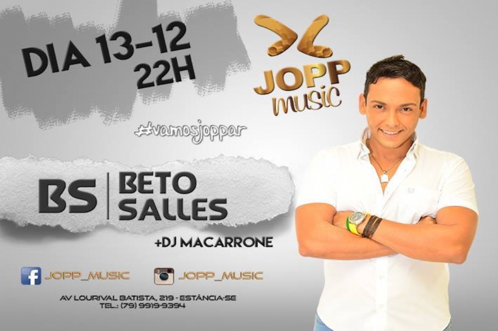 Sergipe agora tem uma nova casa de show, a Jopp Music. A segunda noite de festa na casa será comandada pelo cantor Beto Salles e o DJ Macarrone. A casa de show está localizada na Avenida Lourival Batista, 219, Estância / SE.