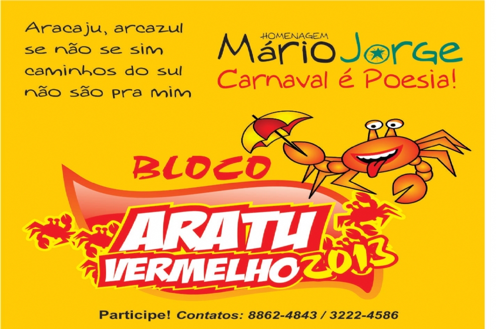 O tradicional bloco Aratu Vermelho traz o tema “Carnaval é Poesia” em homenagem ao poeta Mário Jorge. Karla Isabela, grupo de Maracatu do Sintese e os Indomáveis estão entre as atrações. O Esquenta Aratu, Bloco Aratu Vermelho e Feijoada do Aratu Vermelho fazem parte da festa.