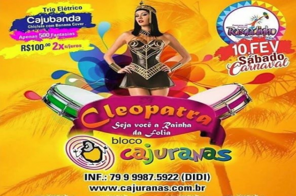 O Bloco Cajuranas vai desfilar pelas ruas de Aracaju no sábado, 10 de fevereiro. A concentração acontece a partir das 14h, na rua Estância, em frente ao Colégio Amadeus. A edição 2018 contará com fantasias de Cleópatra.