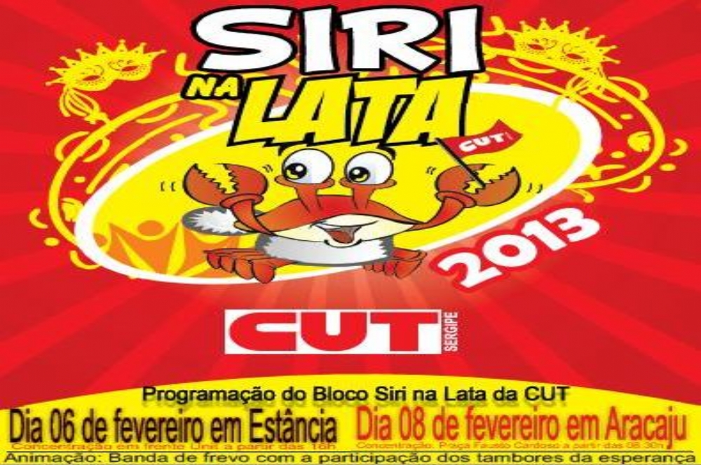O “Siri na Lata”, tradicional bloco dos trabalhadores e trabalhadoras de Sergipe, já tem data para sair às ruas em 2013. Para este Carnaval, foram preparados dois cortejos: Um na cidade de Estância, no dia 6 de fevereiro (quarta-feira) e outro na capital sergipana, no dia 8 de fevereiro (sexta-feira).