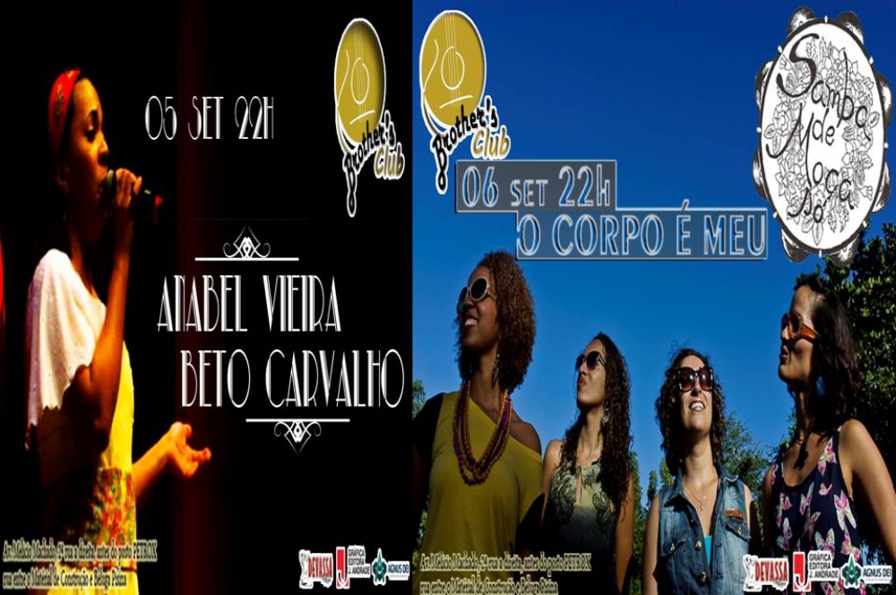 Na sexta-feira, dia 5, o Brother’s Club recebe o show de Anebel Vieira, Beto Carvalho e convidados. No repertório, MPB, POP e regional.