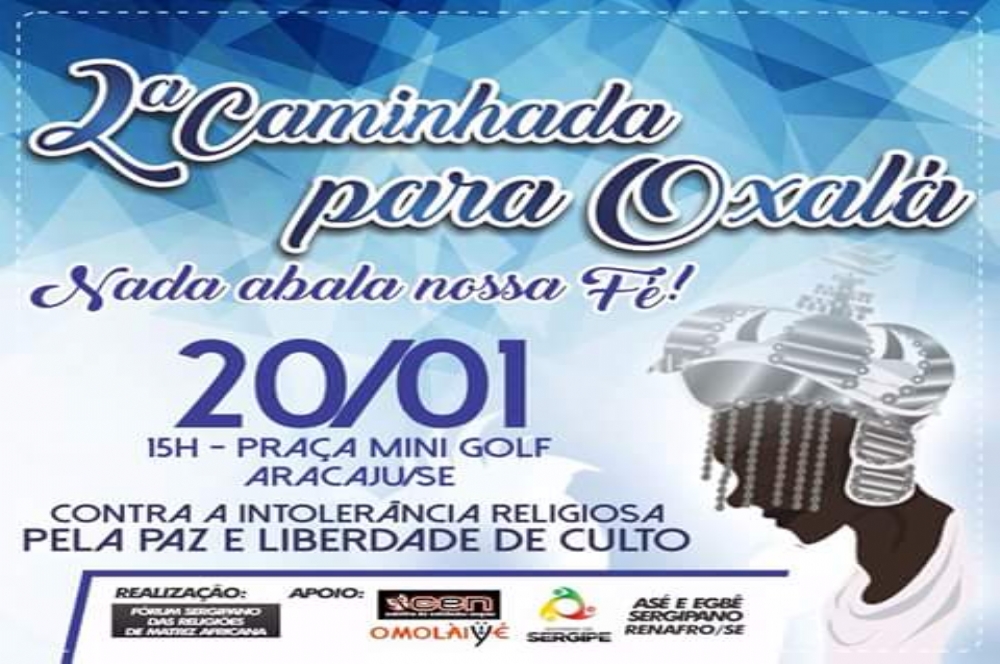 O Fórum Sergipano das Religiões de Matriz Africana realiza no dia 20 de janeiro, a partir das 15h, na Praça do Mini Golf, a segunda edição da Caminhada para Oxalá.