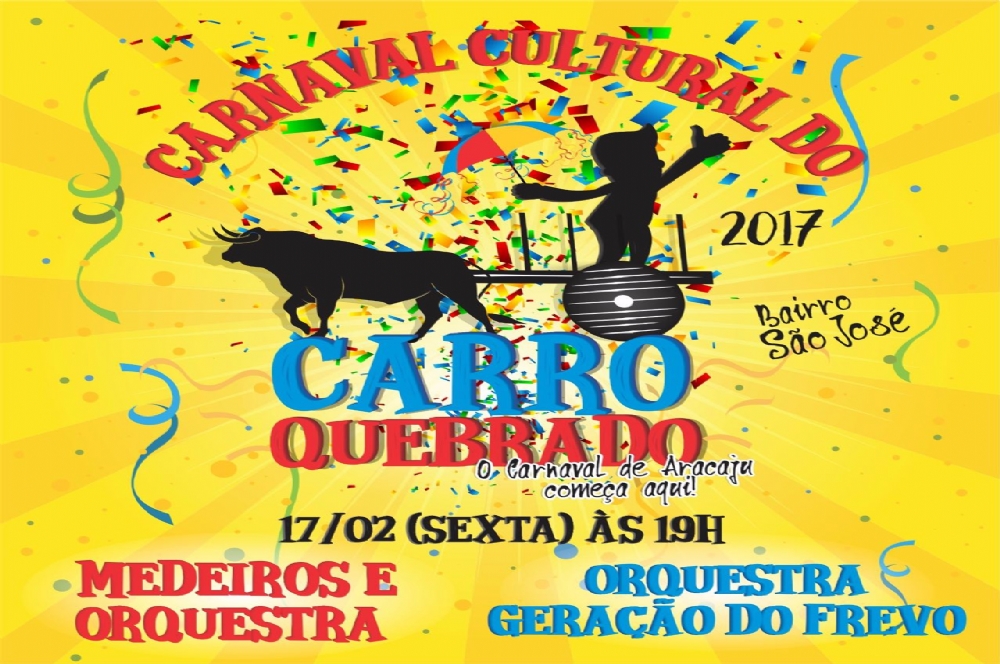 O Carnaval do Carro Quebrado acontece no dia 17 de fevereiro, a partir das 19h, no bairro São José, em Aracaju.