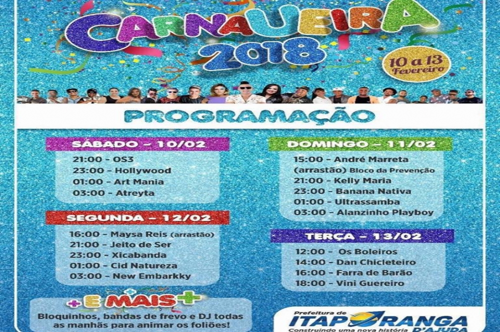 A praia da Cueira, em Itaporanga D’Ajuda, tem uma programação recheada de atrações no Carnaval. Os shows acontecem entre os dias 10 e 13 de fevereiro. Confira!