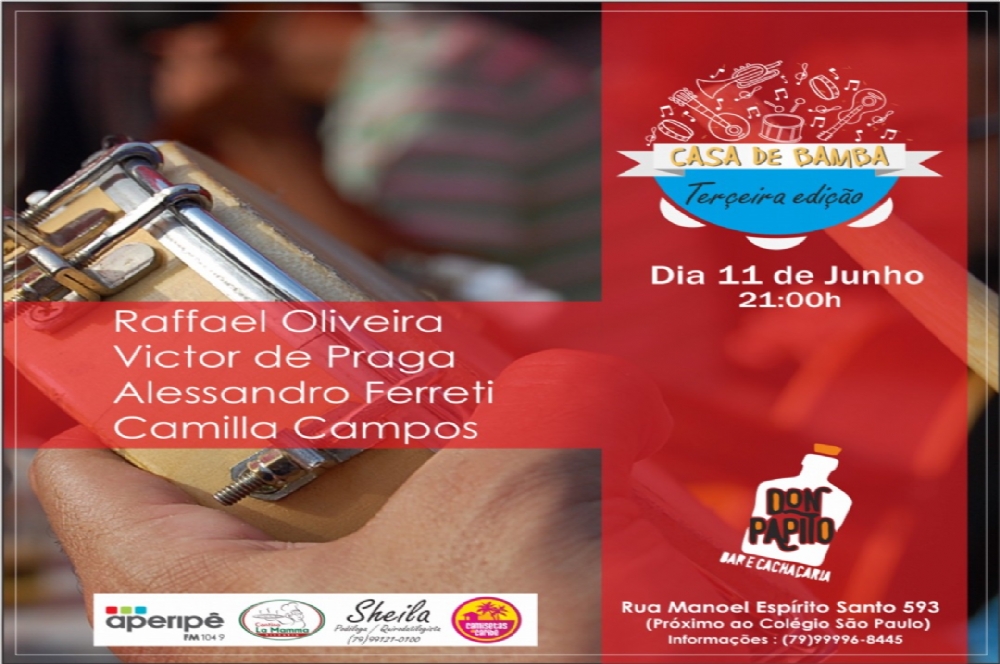 Em tom de comemoração aos dias dos namorados, o Don Papito vai realizar no dia 11 de junho a terceira edição do Projeto Casa de Bamba. Com uma roda de samba, os músicos do cenário sergipano farão homenagens aos mestres do forró com música de qualidade, cerveja gelada e muito samba no pé.