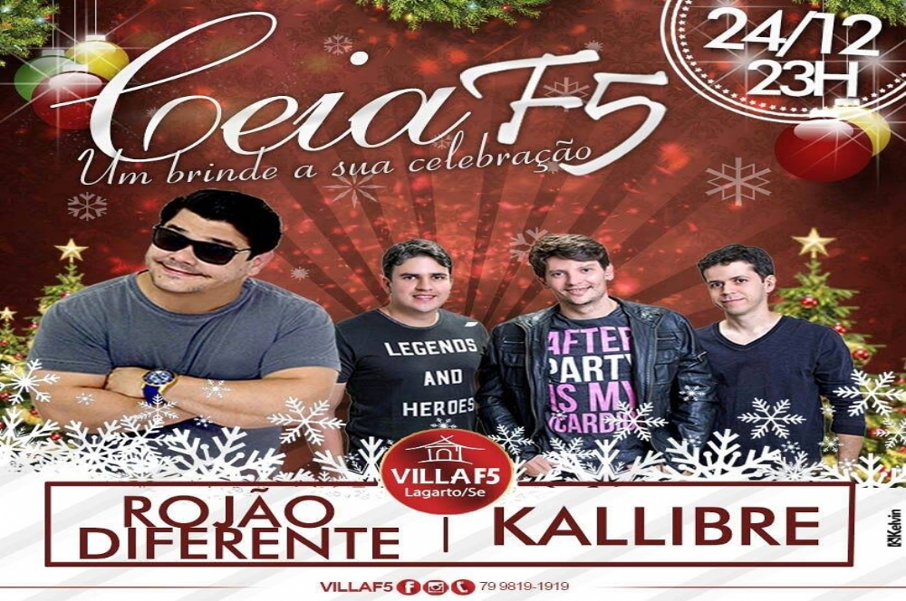 A família Villa F5 convida a todos para um momento especial: a Ceia F5 com Rojão Diferente e Kallibre. A festa acontece no dia 24 de dezembro, a partir das 23h.