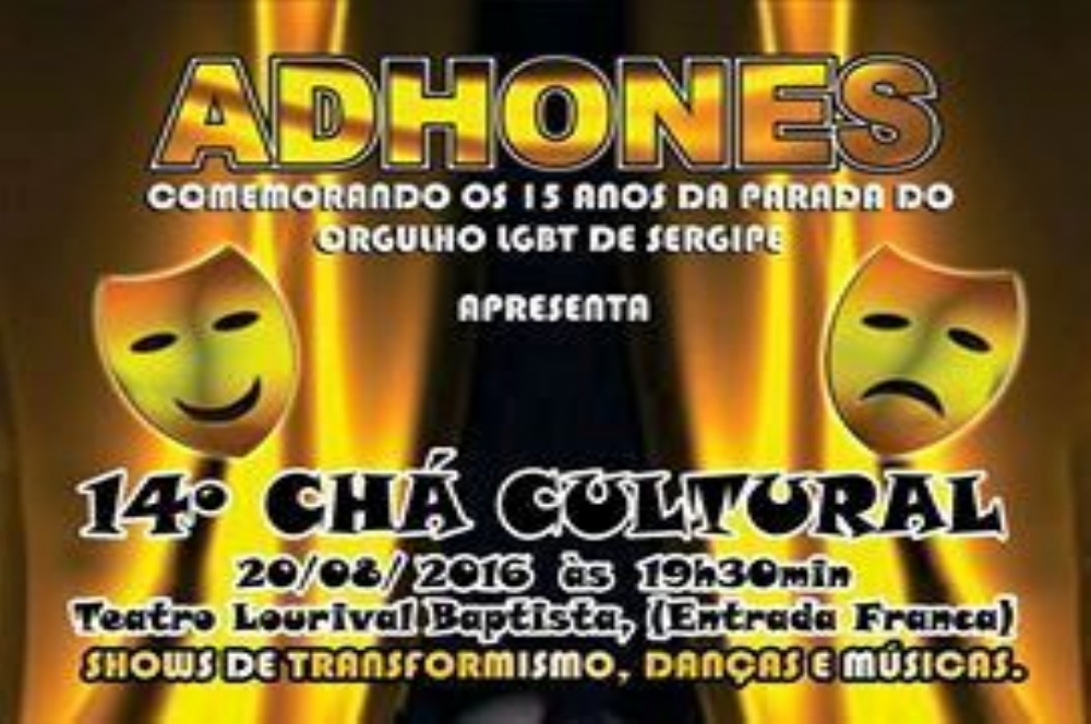 Neste sábado, 20 de agosto, a partir das 19h30, no Teatro Lourival Batista, acontece mais uma edição do Chá Cultural da Associação de Defesa dos Direitos Humanos de Lésbicas, Gays, Bissexuais, Travestis e Transexuais do Estado de Sergipe (Adhones).