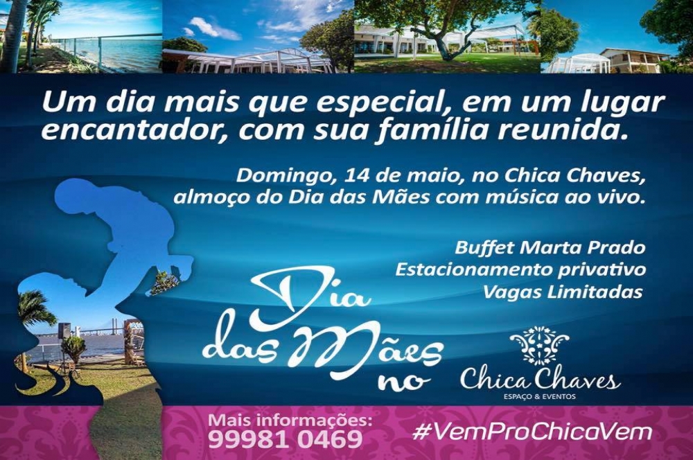O espaço Chica Chaves promove no dia 14 de maio, das 13h às 15h, Almoço do Dia das Mães.