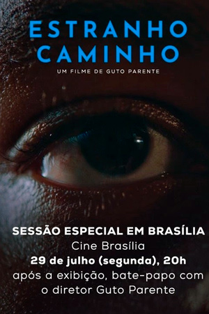 Estranho Caminho. Dir. Guto Parente. Drama, Fantasia. BR. 2023. 83 min. 14 anos. Um jovem cineasta que visita sua cidade natal é surpreendido pelo rápido avanço da pandemia e precisa encontrar seu pai, com quem não fala há mais de dez anos. Depois do primeiro encontro, coisas estranhas começam a acontecer