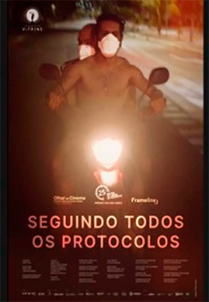 Dir. Fábio Leal. Comédia/Drama. 2021. 74 min.16 anos. Em Seguindo Todos Os Protocolos, Chico está sozinho em seu apartamento, e vive cada dia imerso em marasmo e ansiedade, durante a pandemia. Em sua solidão, é cada vez mais tomado pelo desejo do contato humano, e, em especial, do sexo. Disso, nascem formas alternativas de reencontros, e a procura de uma maneira de tocar outras pessoas com segurança. O longa aborda a solidão do isolamento social na fase mais aguda da pandemia de Covid 19.