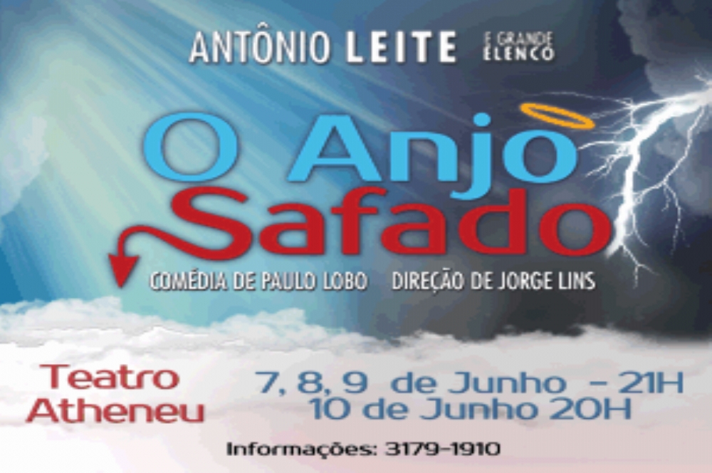 O Anjo Safado é uma comédia musical do autor sergipano Paulo Lobo, que será montada pelo grupo Raízes e pelo ator Antônio Leite, sob a direção de Jorge Lins e a produção da Villela Produções. O espetáculo será apresentado nos dias 7, 8, 9 e 10 de junho no teatro Atheneu, às 21h nos três primeiros dias, e às 20h no dia 10.