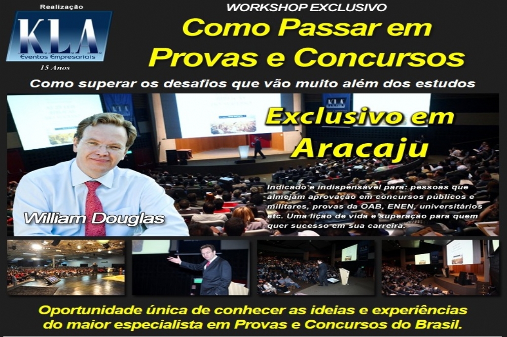Em Aracaju, esse evento acontecerá no dia 7 de maio, das 9h às 12h, no Hotel Mercure. Vendas e informações através do www.klatreinamentos.com.br/provaseconcursos e dos telefones (79) 3041 4182 e 9875 4642. Participe da promoção do Portal Infonet e concorra a ingresso.