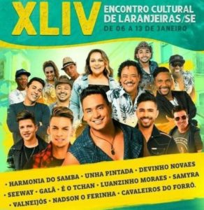 A Prefeitura Municipal de Laranjeiras divulgou a programação artística do 44° Encontro Cultural de Laranjeiras. O evento é inteiramente aberto ao público e a entrada é de graça. Confira aqui a programação cultural que ocorre na cidade.