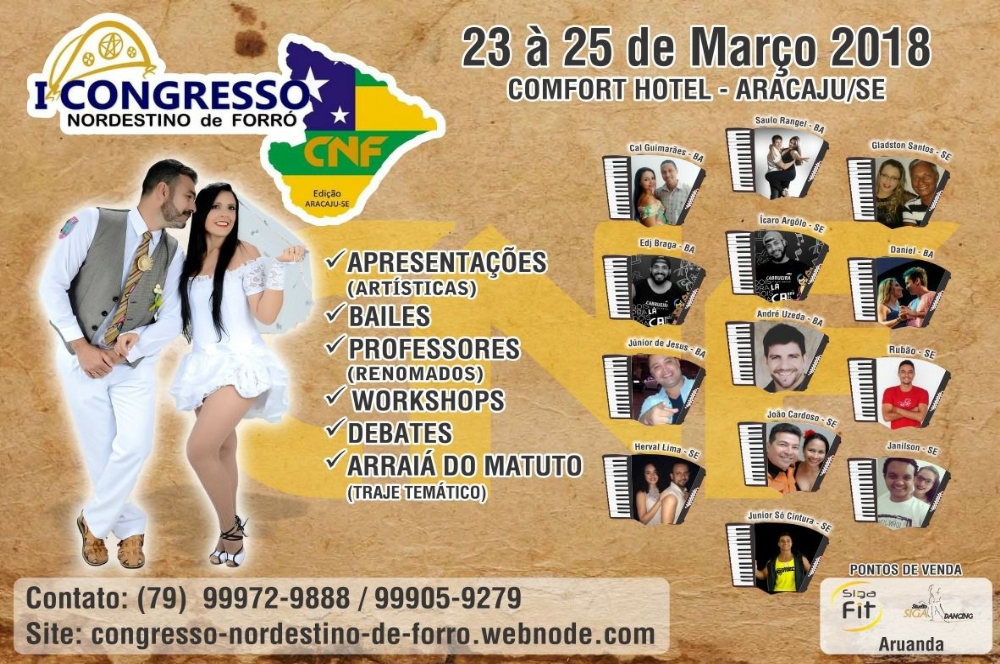 O encerramento do evento será na Casa de Forró Cariri. Quem desejar saber mais informações e se inscrever no 1º Congresso Nordestino de Forró pode telefonar para (79) 99972-9888 / 99905-9279 / https://congresso-nordestino-de-forro.webnode.com.