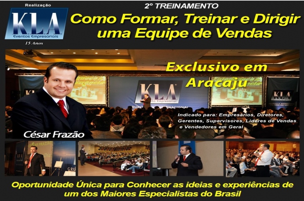 O 2º Seminário Empresarial “Conheça os segredos para formar, treinar e dirigir uma equipe de vendas” será ministrado por César Frazão que irá conduzir os participantes por todas as etapas no recrutamento, treinamento e direção de vendedores.