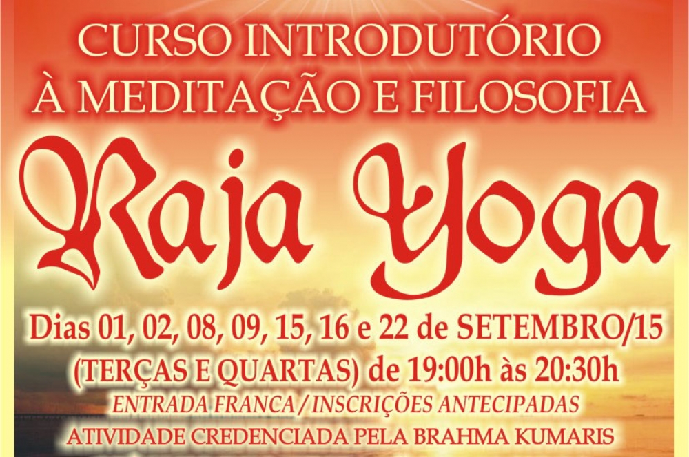 Abertas as inscrições para o curso de Meditação Raja Yoga que acontecerá em setembro próximo. A prática é gratuita e a inscrição deve ser feita com antecipação, pois as vagas são limitadas. Os interessados devem ligar para dar seus dados.
