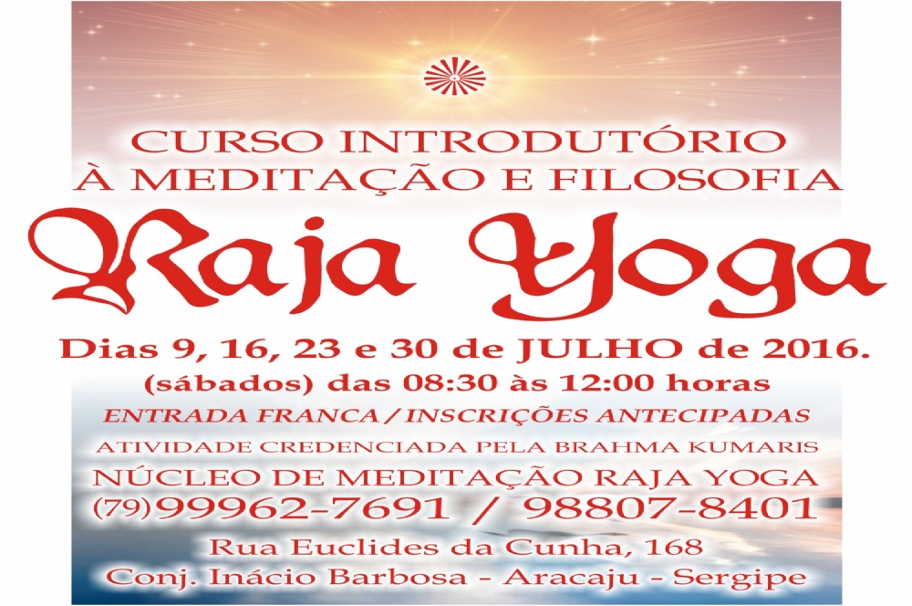 Local: Núcleo de Meditação Raja Yoga. Rua Euclides da Cunha 168, Conjunto Inácio Barbosa.