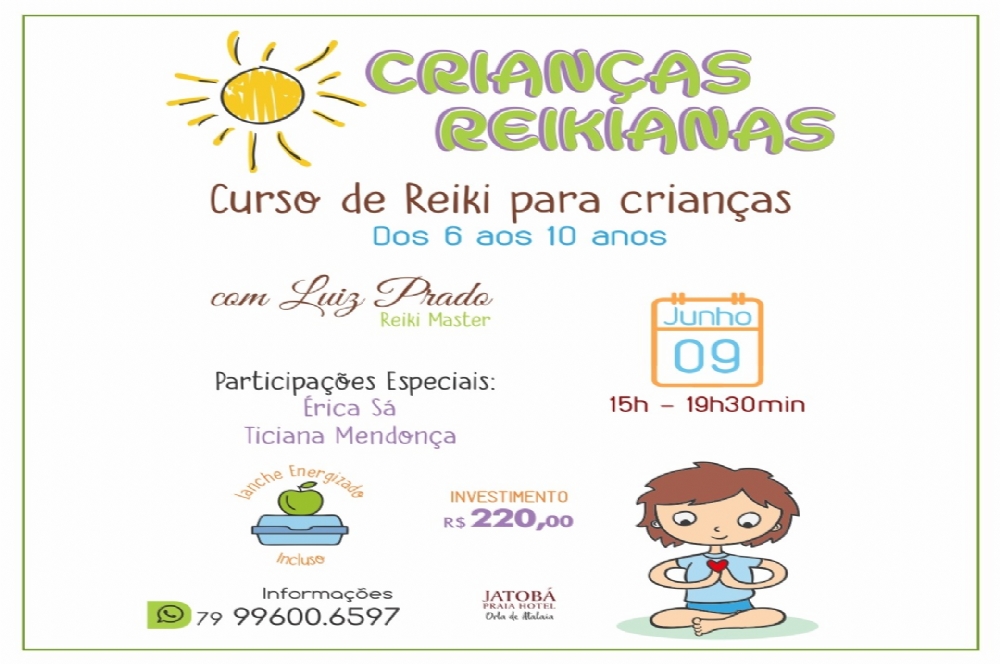 O Reiki Master Luiz Prado vai ministrar um Curso de Reiki para Crianças em Aracaju. A ação acontece dia 9 de junho, das 15h às 19h30.