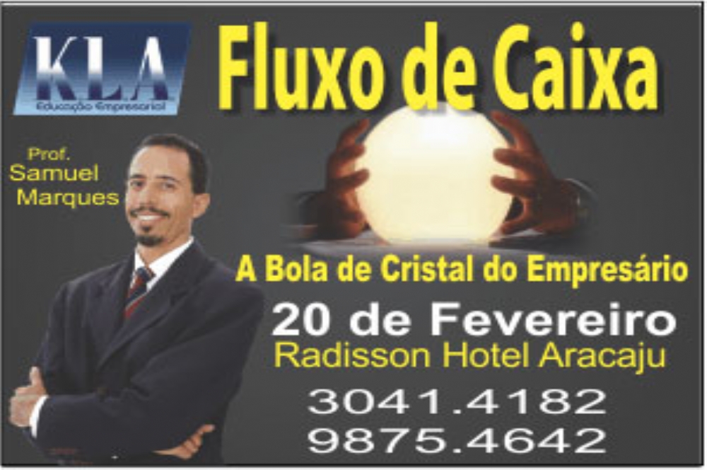 Se você é Empresário, Diretor Comercial, Gerente, Setor Financeiro, Contador ou interessado em ampliar seus conhecimentos para alcançar melhores resultados na vida e nos negócios, não pode deixar de participar no dia 20 de fevereiro de 2013 (quarta-feira) das 09h ás 17h30 no Radisson Hotel do curso exclusivo “Fluxo de Caixa – A bola de cristal do empresário”, o curso que vale por uma consultoria em sua empresa com um dos maiores especialistas do país nesse assunto o Prof. Samuel Marques.