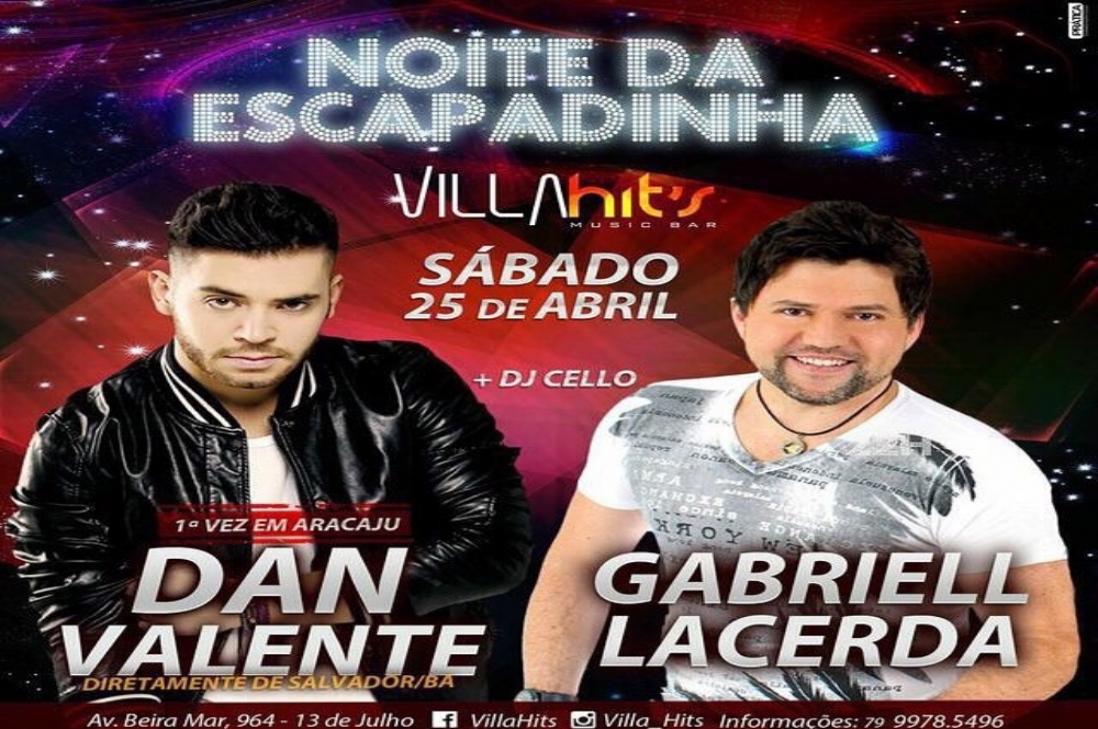 Aterrisando pela primeira vez em Aracaju, o cantor sertanejo baiano Dan Valente vai comandar a Noite da Escapadinha, que acontece neste sábado, 25 de abril, no Villa Hits Music Bar. Gabriell Lacerda também vai fazer parte da festa.