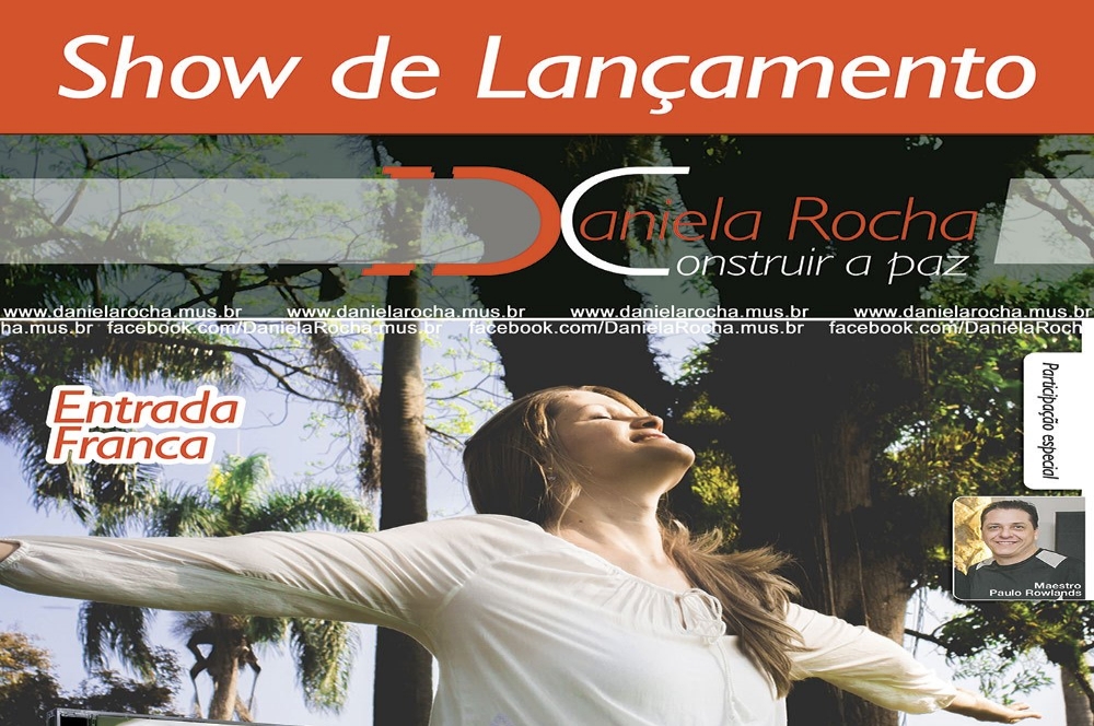A cantora Daniela Rocha lança nesta sexta-feira, dia 02 de outubro, às 20h, na Sociedade Semear, seu primeiro CD de músicas. Com uma seleção de 14 canções, Construir a Paz, tem a direção artística do maestro Paulo Rowlands (SP), que também participa do evento. Entrada será franca.