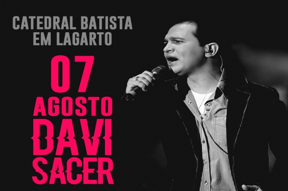 Davi Sacer vai se apresentar na Catedral Batista de Lagarto neste domingo, 7. O Culto em ação de Graças ao Senhor acontece a partir das 19h, na Rua Manoel de Paula. A entrada é 1 kg de alimento não perecível.