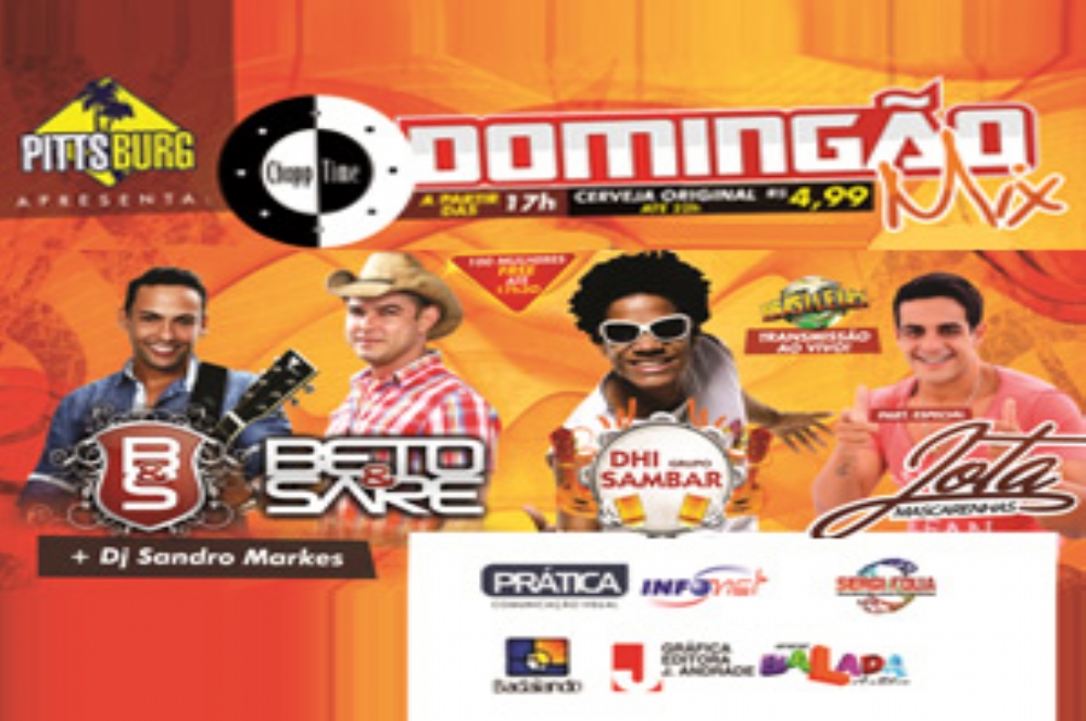 Beto & Sare, Dhi Sambar e Jota Mascarenhas comandam o Domingão Mix do Chopp Time. A festa acontece no dia 29 de setembro, a partir das 17h.
