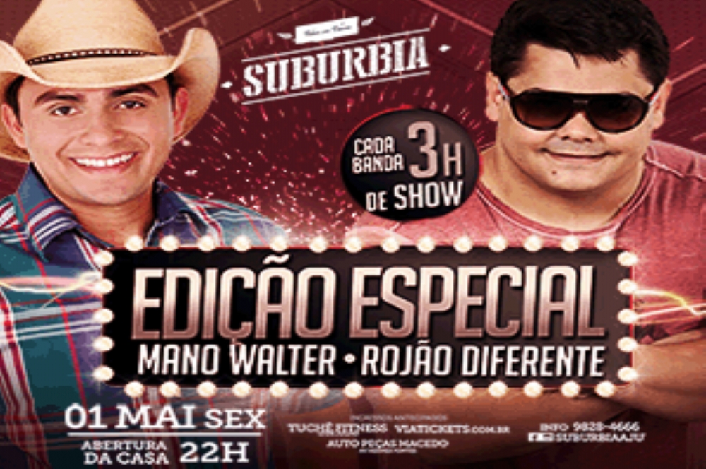 Todos os caminhos indicam à casa de todas as tribos, Subúrbia, para a celebração do dia do trabalhador. A casa traz no feriado de 1 de maio, sexta-feira, shows com o estourado Mano Valter e Rojão Diferente. É o São João se aproximando e o forró tomando conta das programações sergipanas. Período delicioso de tradição, suor e alegria. Ingressos na Auto Peças Macêdo (Hermes Fontes) e Tuchê Fitness (13 de Julho). Participe da promoção do Portal Infonet e concorra a ingresso.