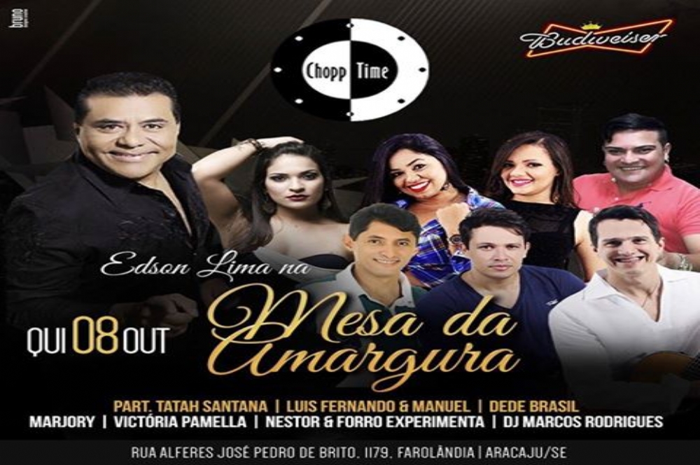 Uma noite repleta de músicas românticas e populares. É o que promete o cantor Edson Lima que traz a Aracaju o show ‘Mesa da Amargura’ que acontece nesta quinta-feira, 8, a partir das 22h, no Chopp Time.