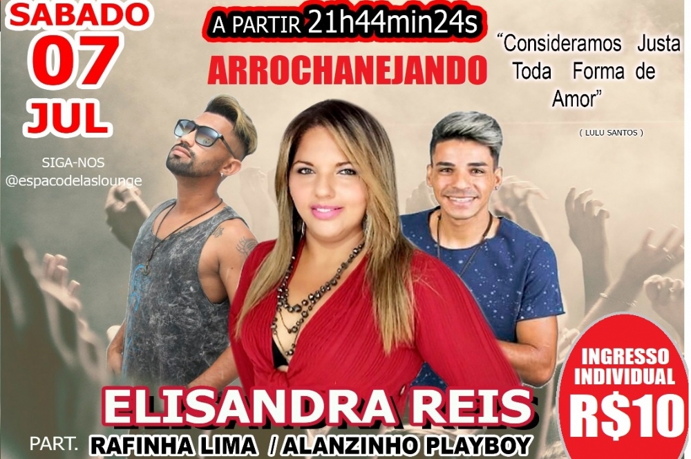 O ‘Arrochanejando’ acontece neste sábado, 7, a partir das 21h, com Elissandra Reis e participações especiais de Rafinha Lima e Alanzinho Playboy.